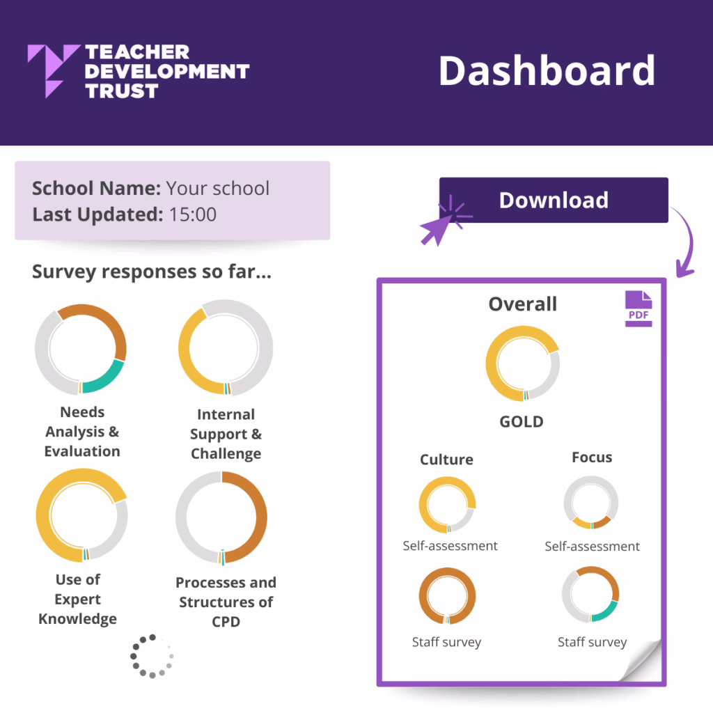 Our professional learning leads will then bring all of these insights together into a comprehensive report. You will receive this along with recommendations for your next steps and an Emerging, Bronze, Silver, or Gold award depending on the current strength of the CPD provision.
